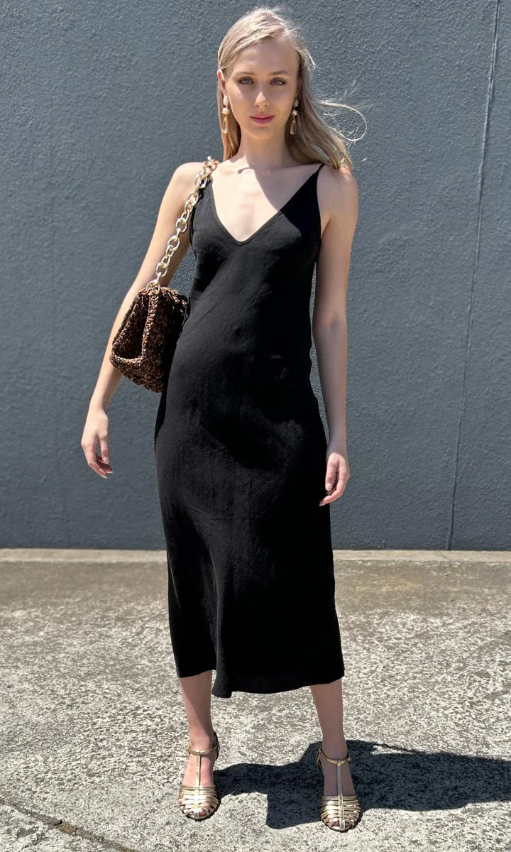 Dominique Midi Shift Dress - Black Muslin’s